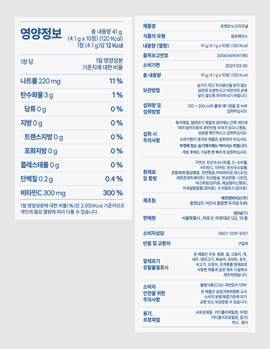 원재료명 (관계 법령에 따른 원산지 표시 포함) 및 함량